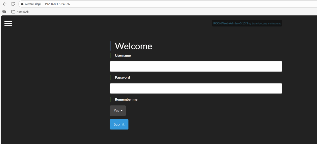 kullanıcı adı şifresini girin ve minecraft sunucunuzu webden yönetmeye başlayın.